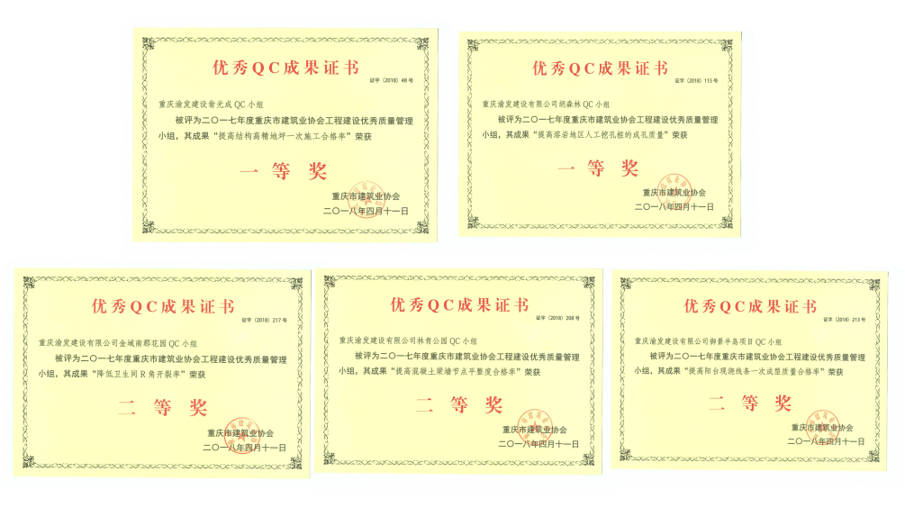 2018年4月12日,重庆市建筑业协会“2017年度建设优秀质量管理小组表彰暨成果发布会”隆重召开。重庆z6尊龙官方建设有限公司荣获“2017年度建设优秀质量管理小组”一等奖两名,二等奖三名。...